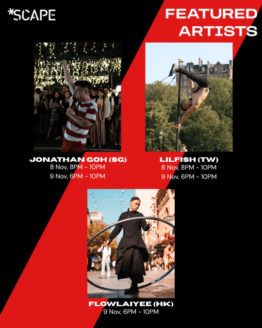 The *SCAPE Street Show is a curated street performance platform that spotlights a diverse range of talents and creative expressions. Featuring everything from live music and circus arts to experimental and boundary-pushing performances, the programme creates opportunities for emerging performers to present their craft in open, accessible public spaces.